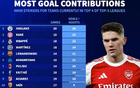 五大联赛前四球队前锋参与进球榜:哈兰德第1,哲凯倒数第2