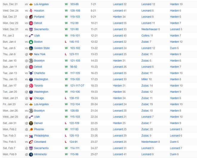 4.伦纳德赛季第四场40+生涯新高;