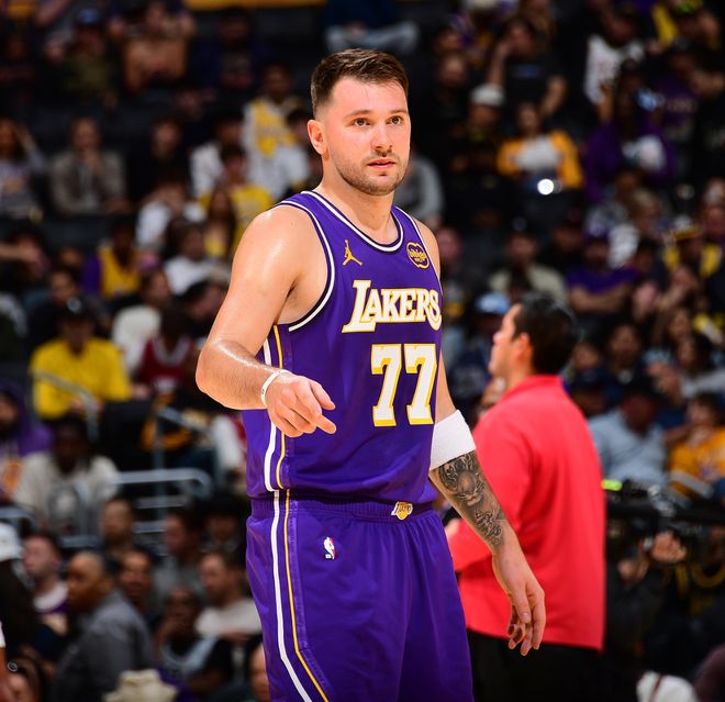 次节东契奇依旧延续自己的进攻感觉,但防守端就一片稀烂了,单节7中4+三分2中1拿到13分1助攻,半场拿到24分3篮板2助攻,东契奇半场20+的次数已经升至湖人队史第五位。